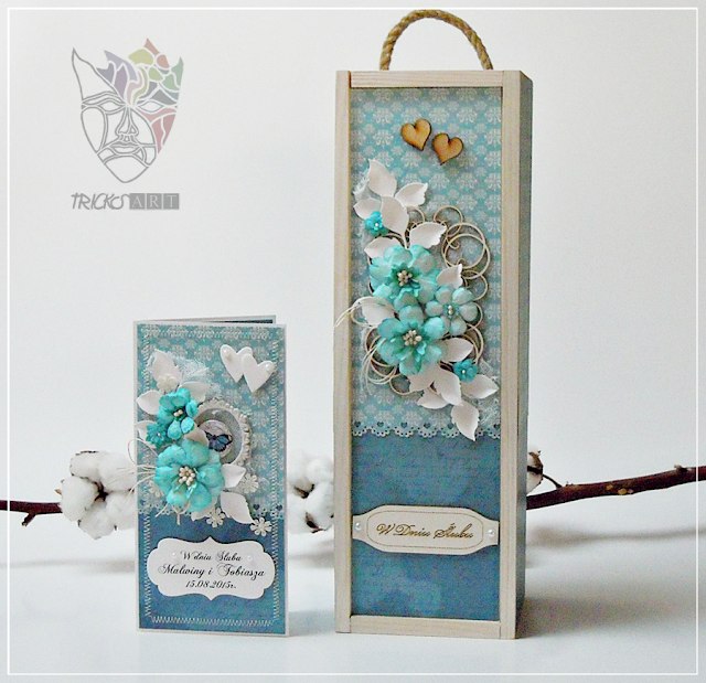 przygotowałam dziś w prezencie ślubnym pudełko na wino i kartkę z kieszonką ;)